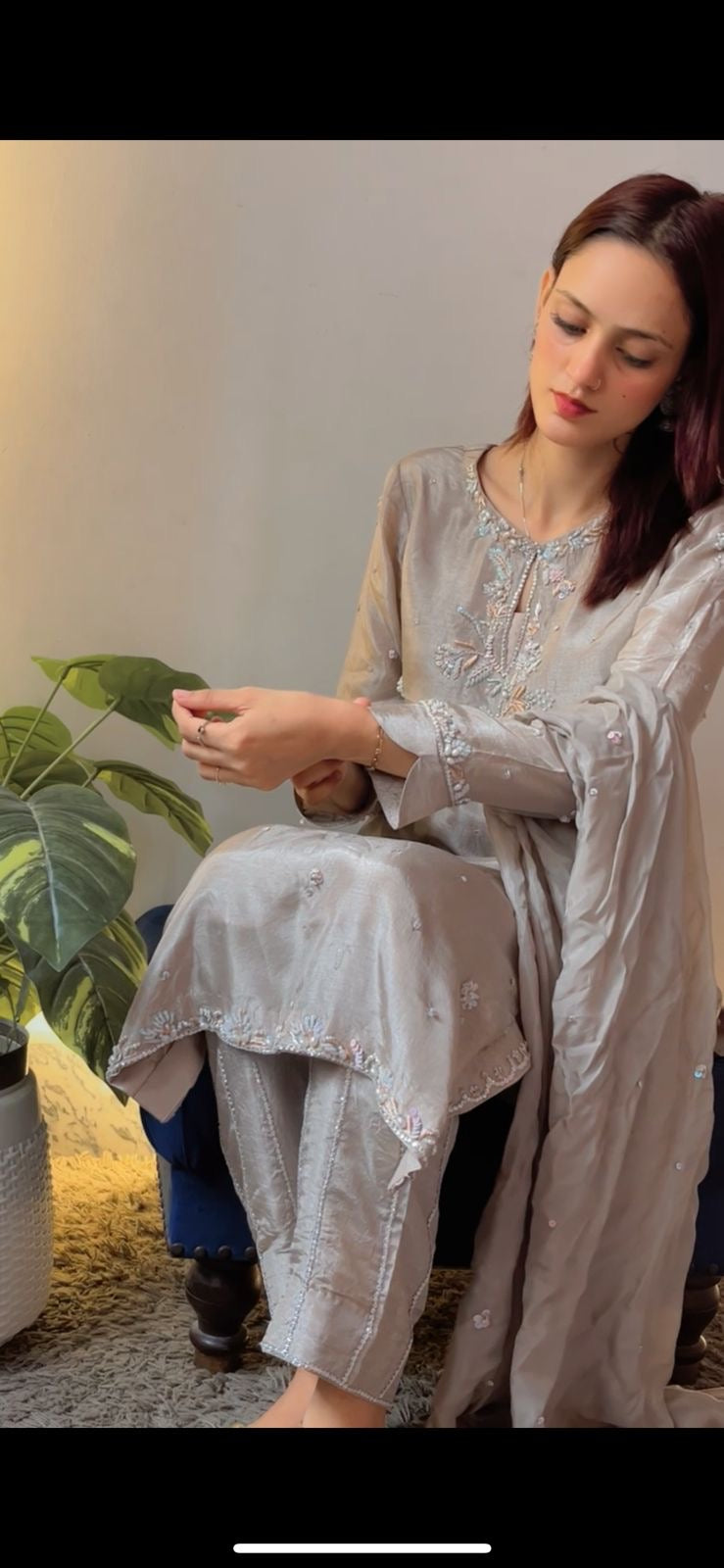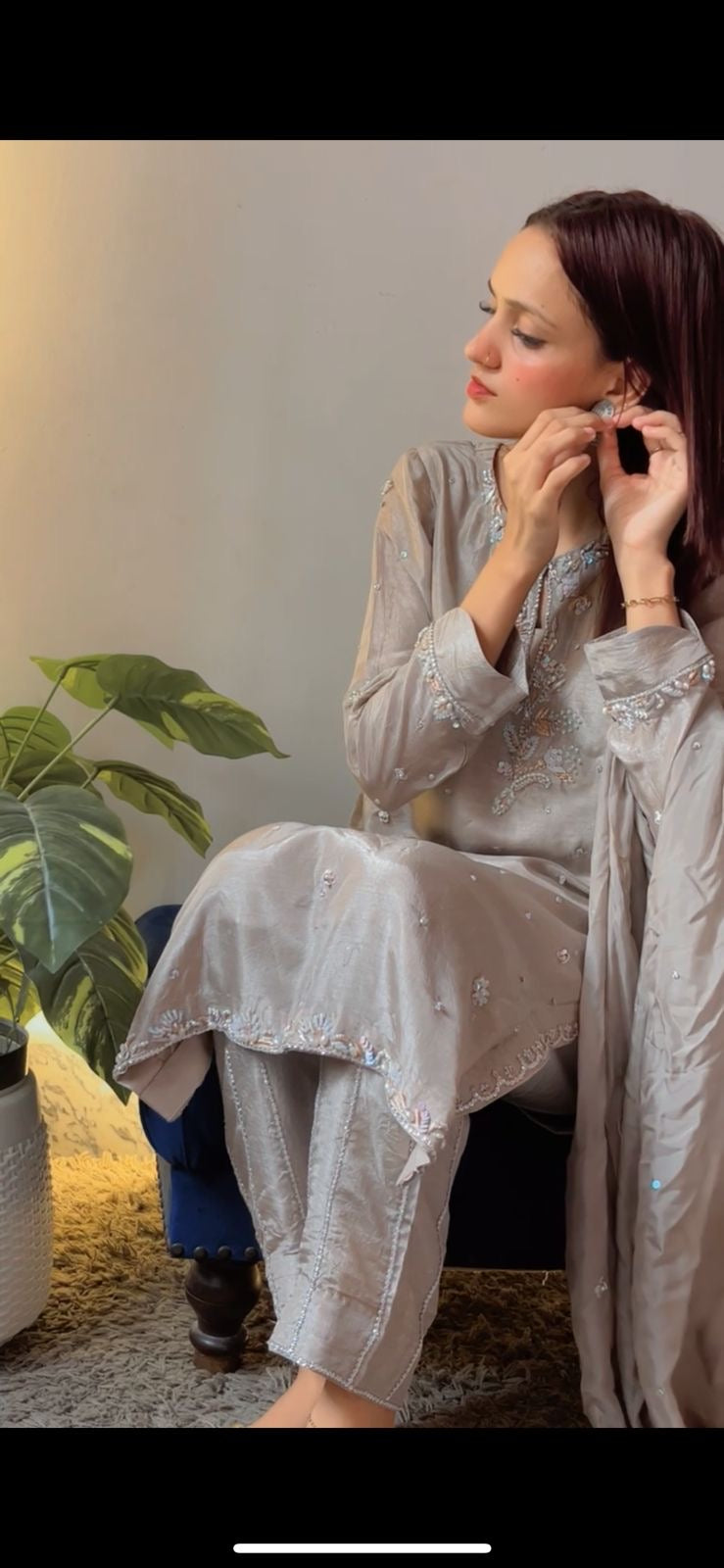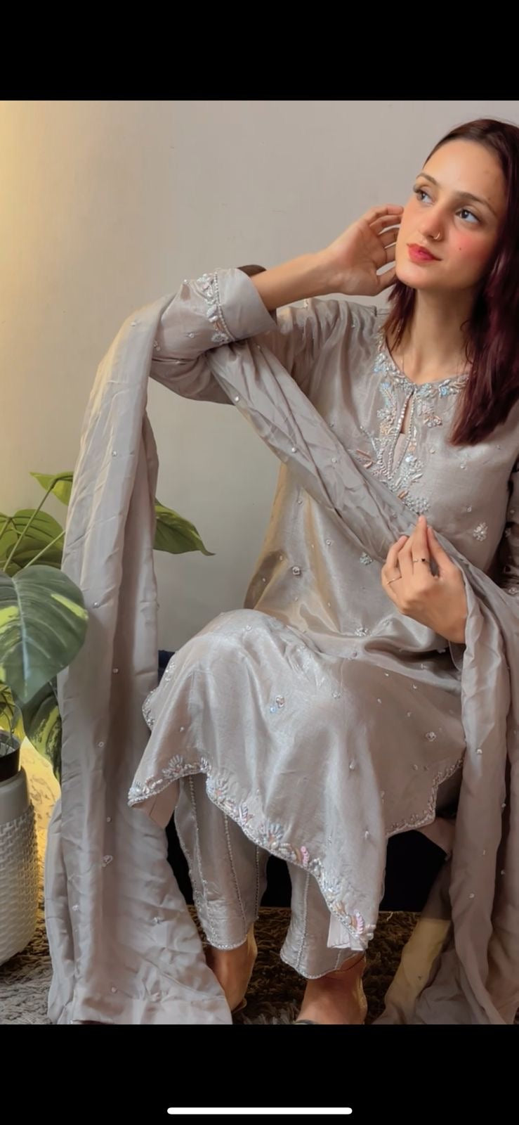 Discover understated luxury with our Pure Tassel Silk Suit, thoughtfully paired with a Plain Medium Silk Dupatta and adorned with elegant handwork detailing. Available in both ready-to-wear and made-to-order options, this ensemble blends timeless charm with handcrafted elegance—perfect for festive gatherings, formal events, or graceful everyday wear.