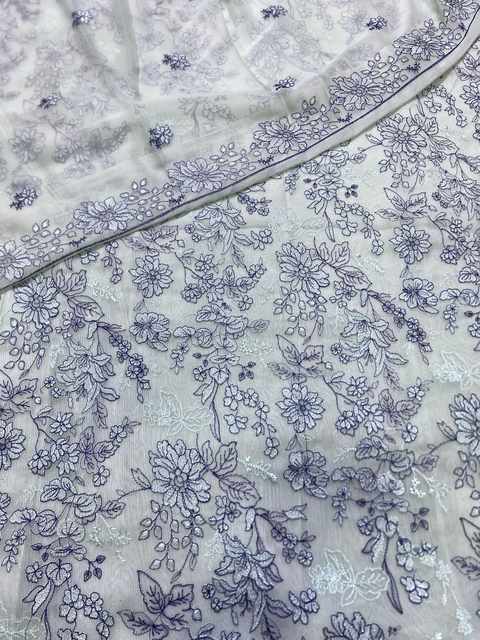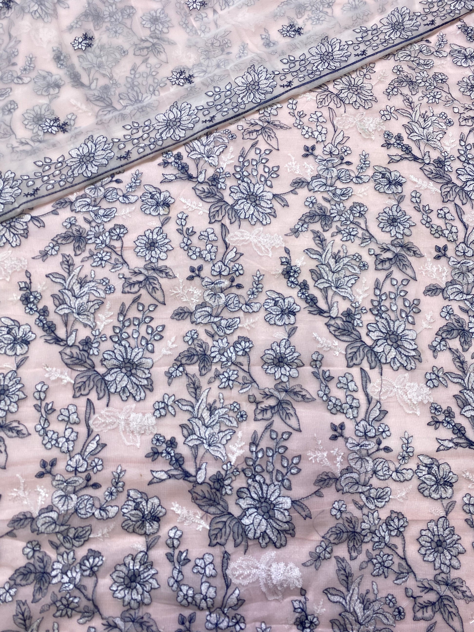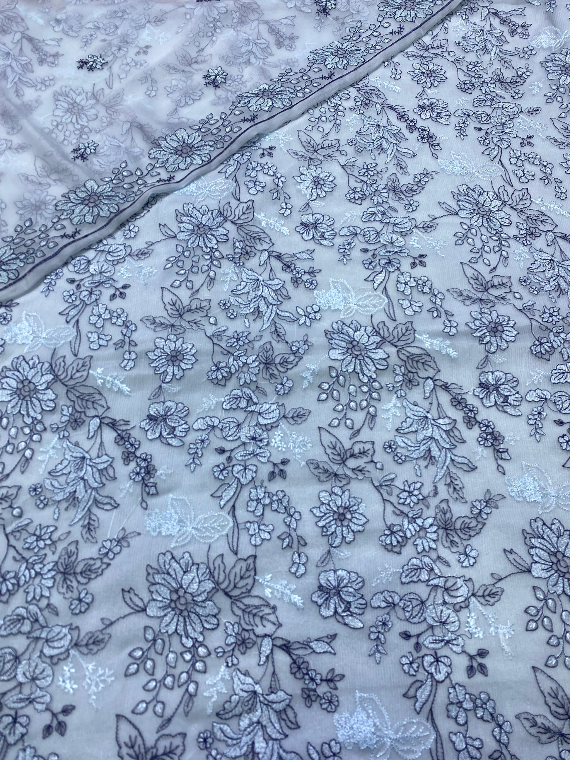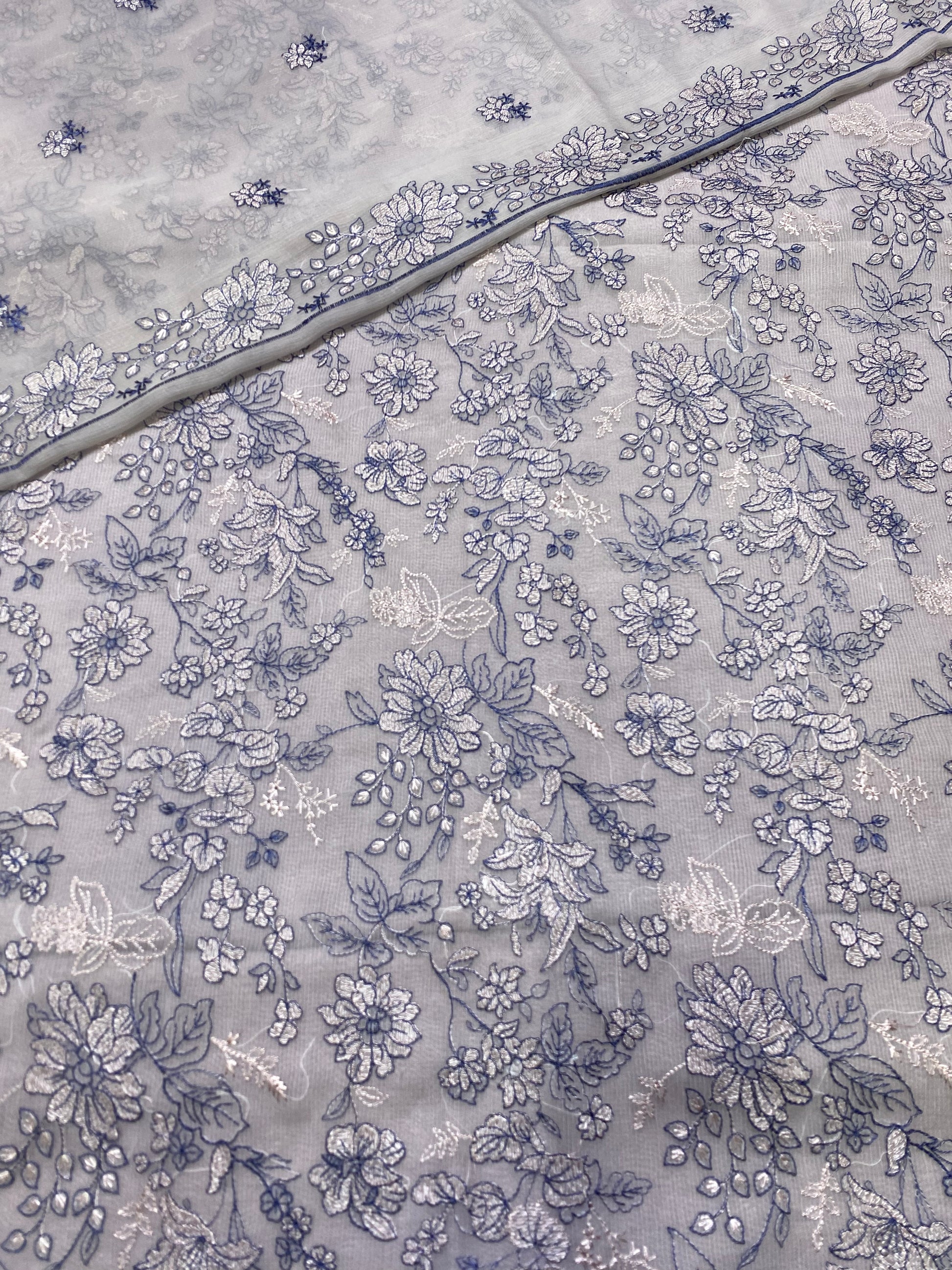 Elevate your style with our luxurious chiffon fabric, beautifully crafted in a Bareeze-inspired design. This fabric blends elegance with comfort, perfect for creating stunning outfits that radiate sophistication.