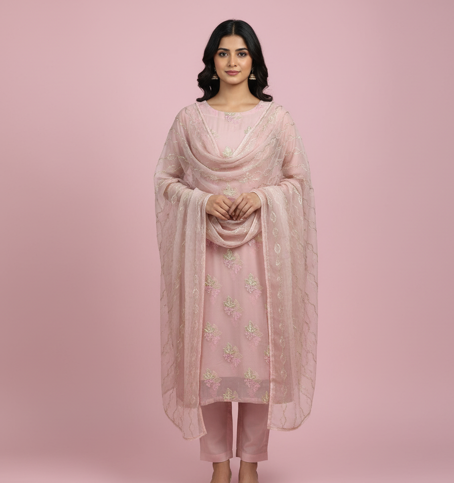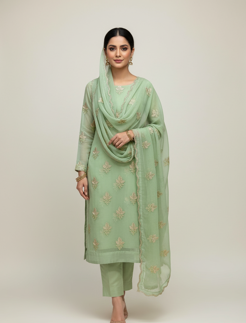- Dupatta: Coordinating chiffon dupatta with fine embellishments or printed design (depending on style)
