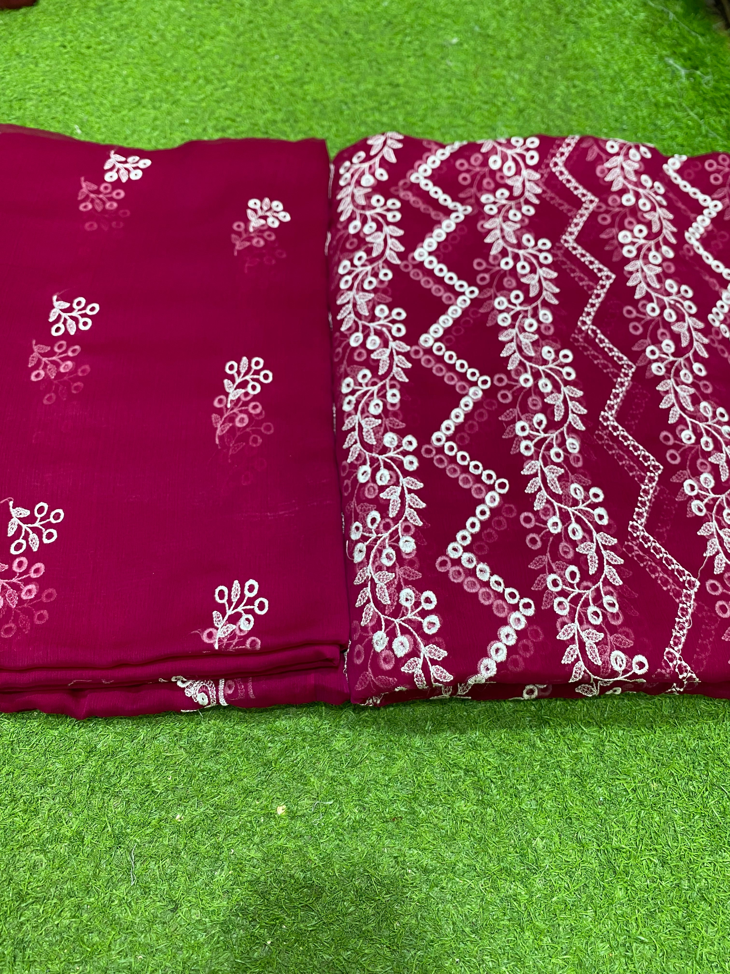 Discover the perfect blend of tradition and elegance with our Chiffon Fabric Boring Work Design featuring delicate Chikan Kari embroidery, paired beautifully with a soft, flowing chiffon dupatta. This unstitched ensemble is ideal for creating a graceful look for festive occasions, cultural events, or evening gatherings.