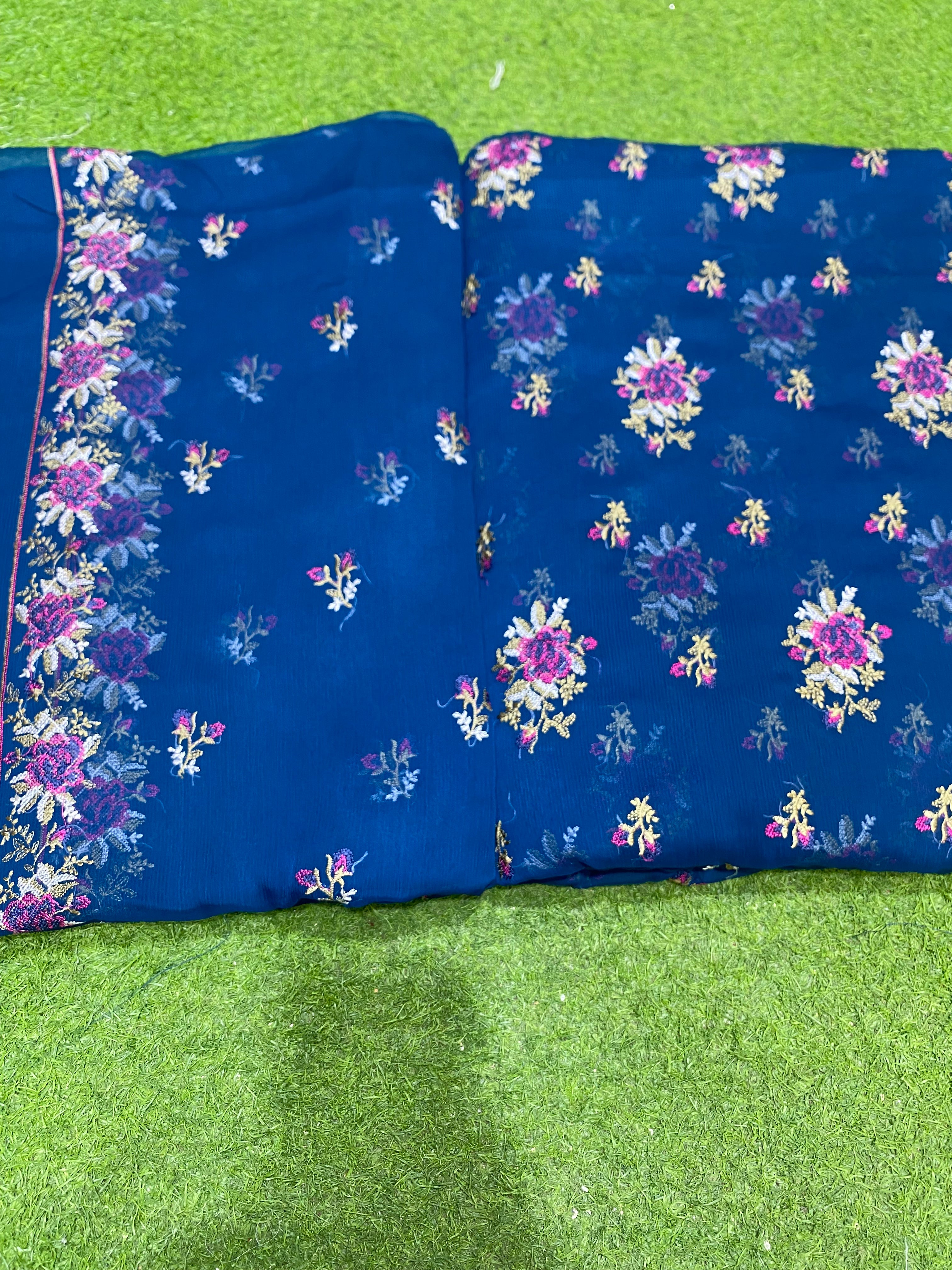 Add a touch of artistic charm to your wardrobe with our premium chiffon fabric featuring stunning cross-stitch embroidery. This fabric combines the soft, flowy nature of chiffon with the timeless beauty of detailed cross-stitch patterns, creating a look that’s both graceful and contemporary.
