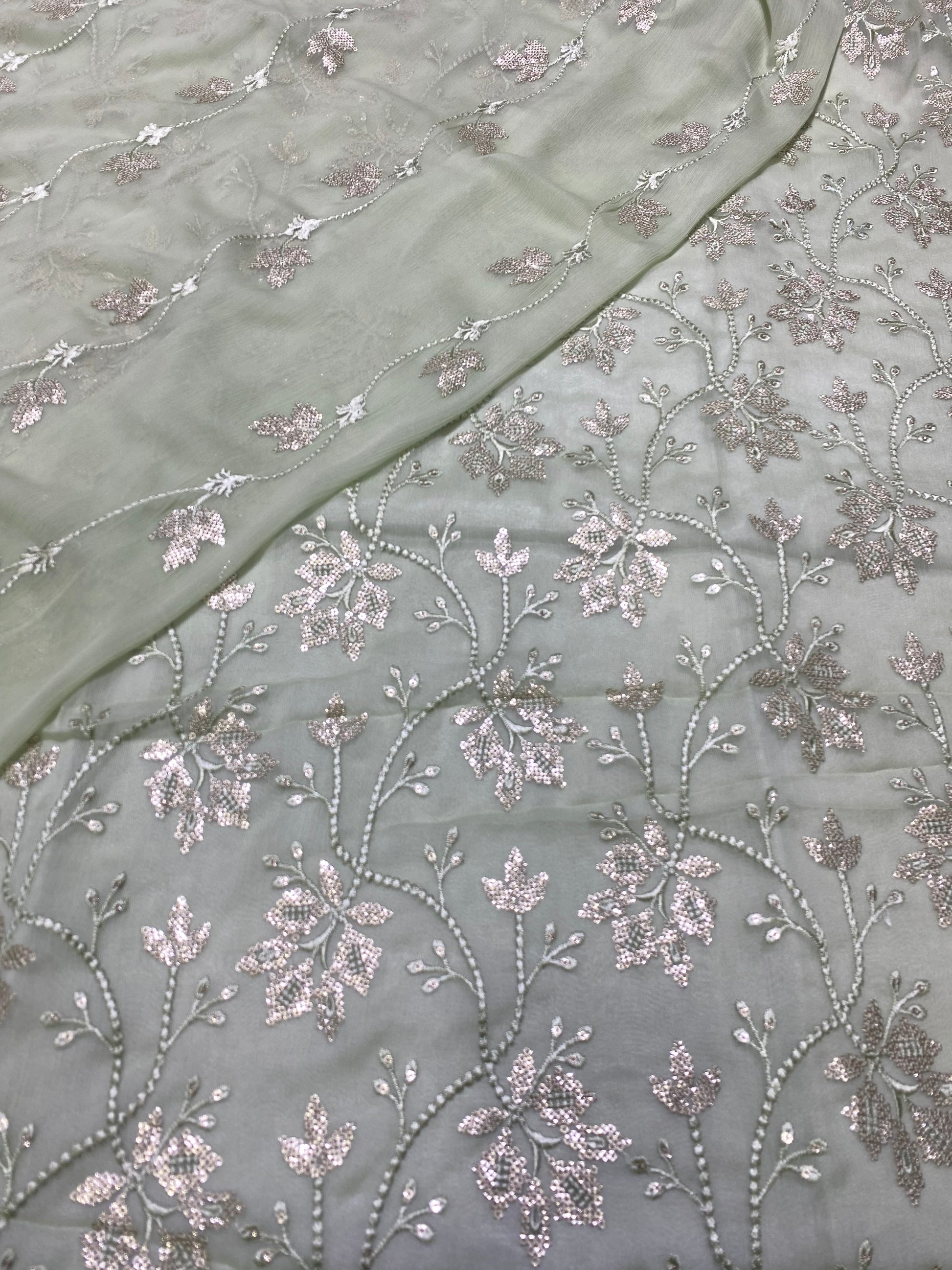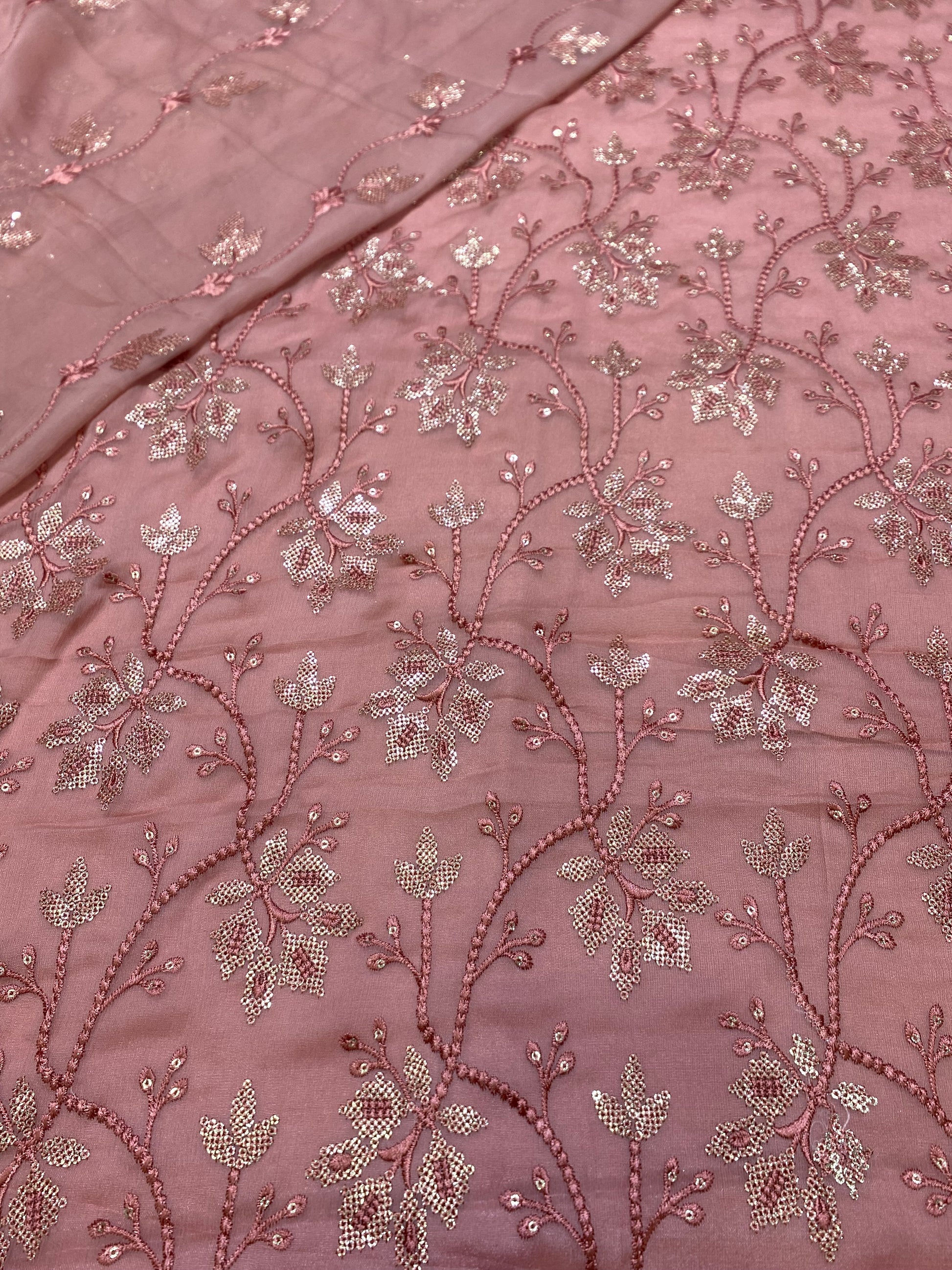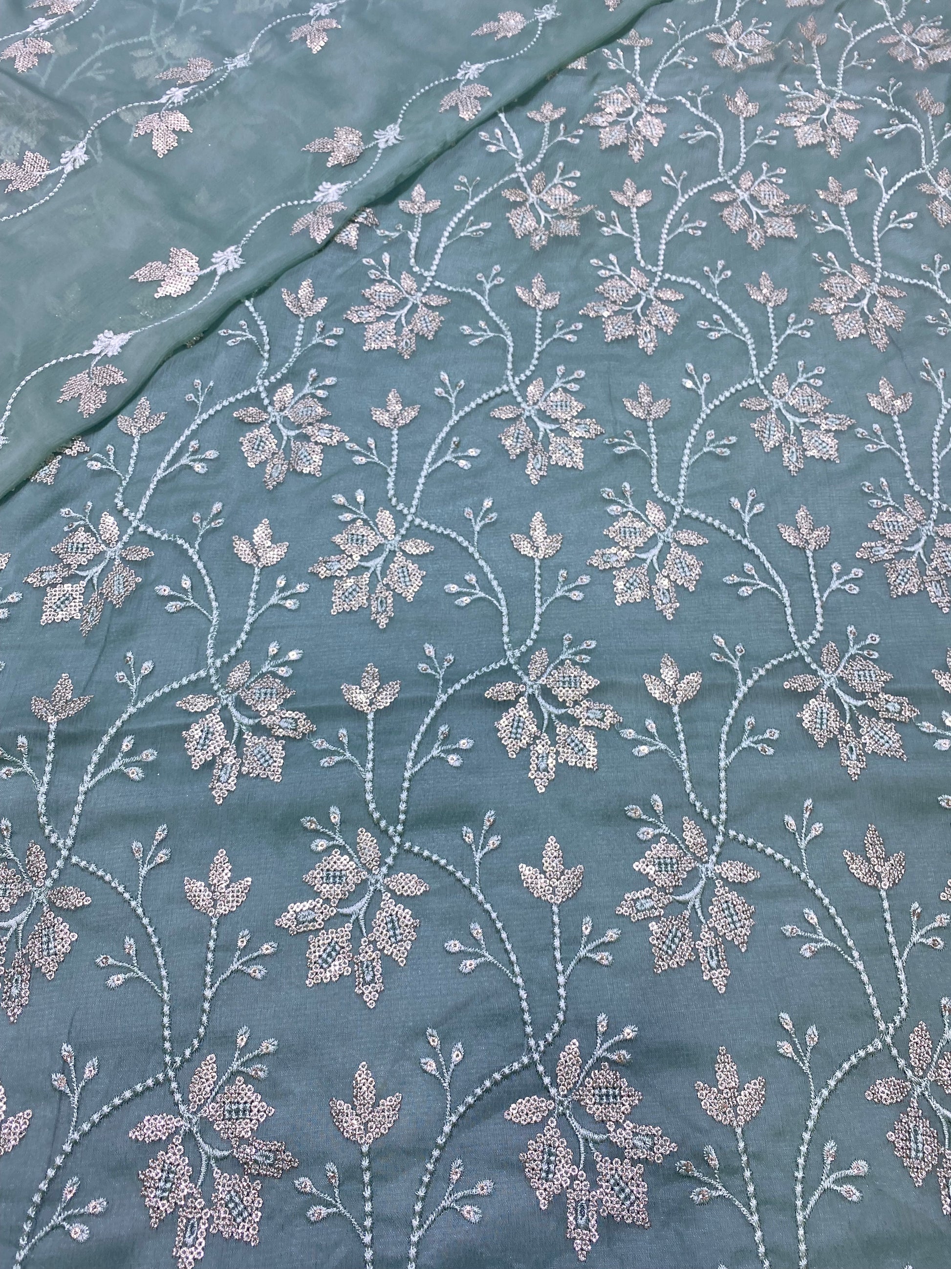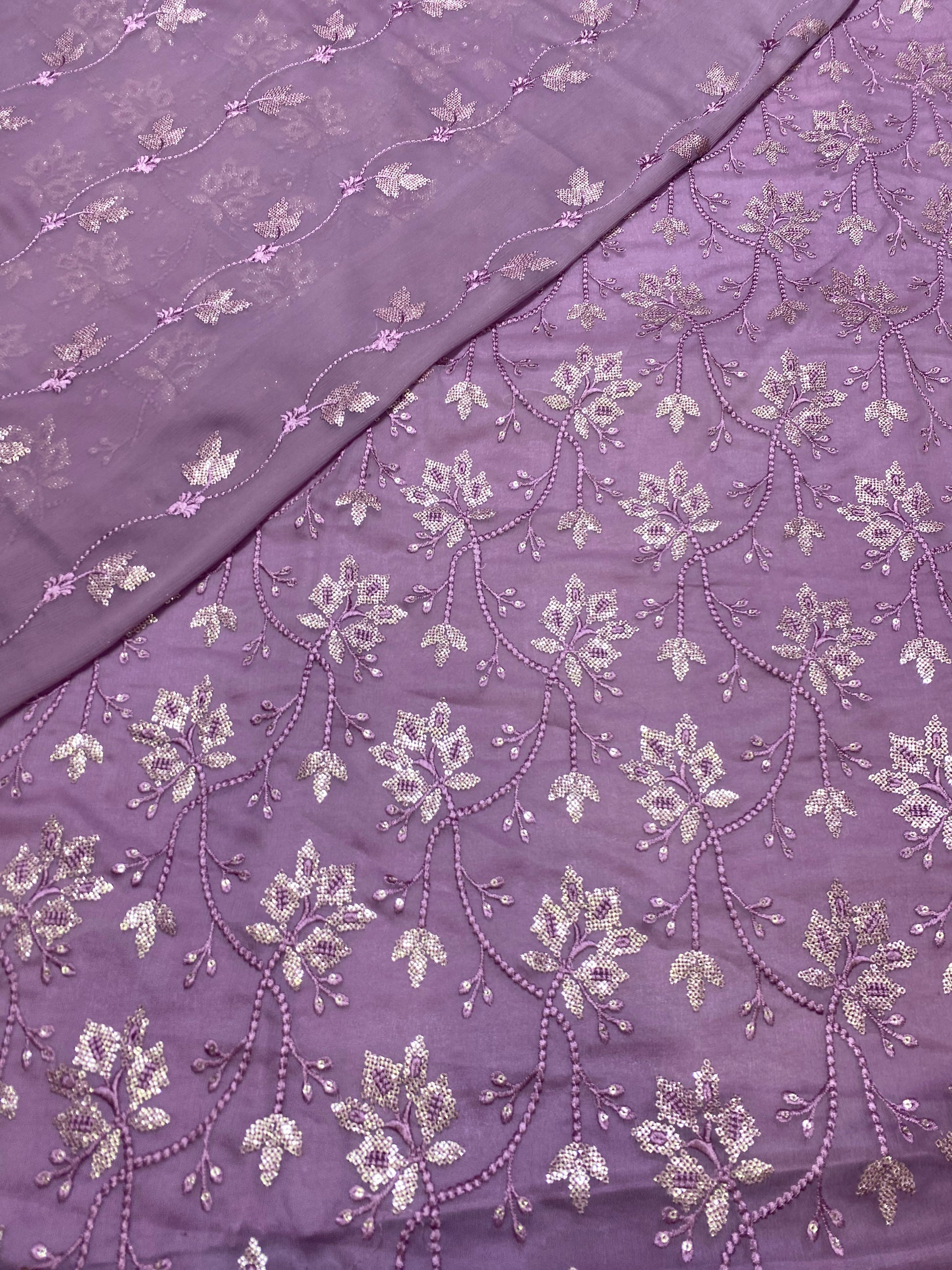 Add a touch of elegance to your wardrobe with our premium chiffon fabric, featuring a beautiful cross stitch design. This fabric combines the delicacy of chiffon with the charm of traditional embroidery, making it a perfect choice for both formal and festive wear.