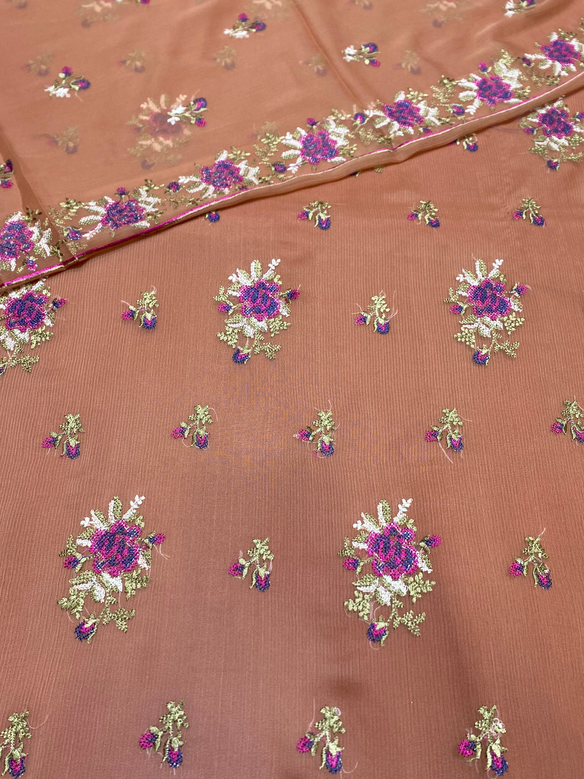 Cross Stitch Design on Chiffon Fabric