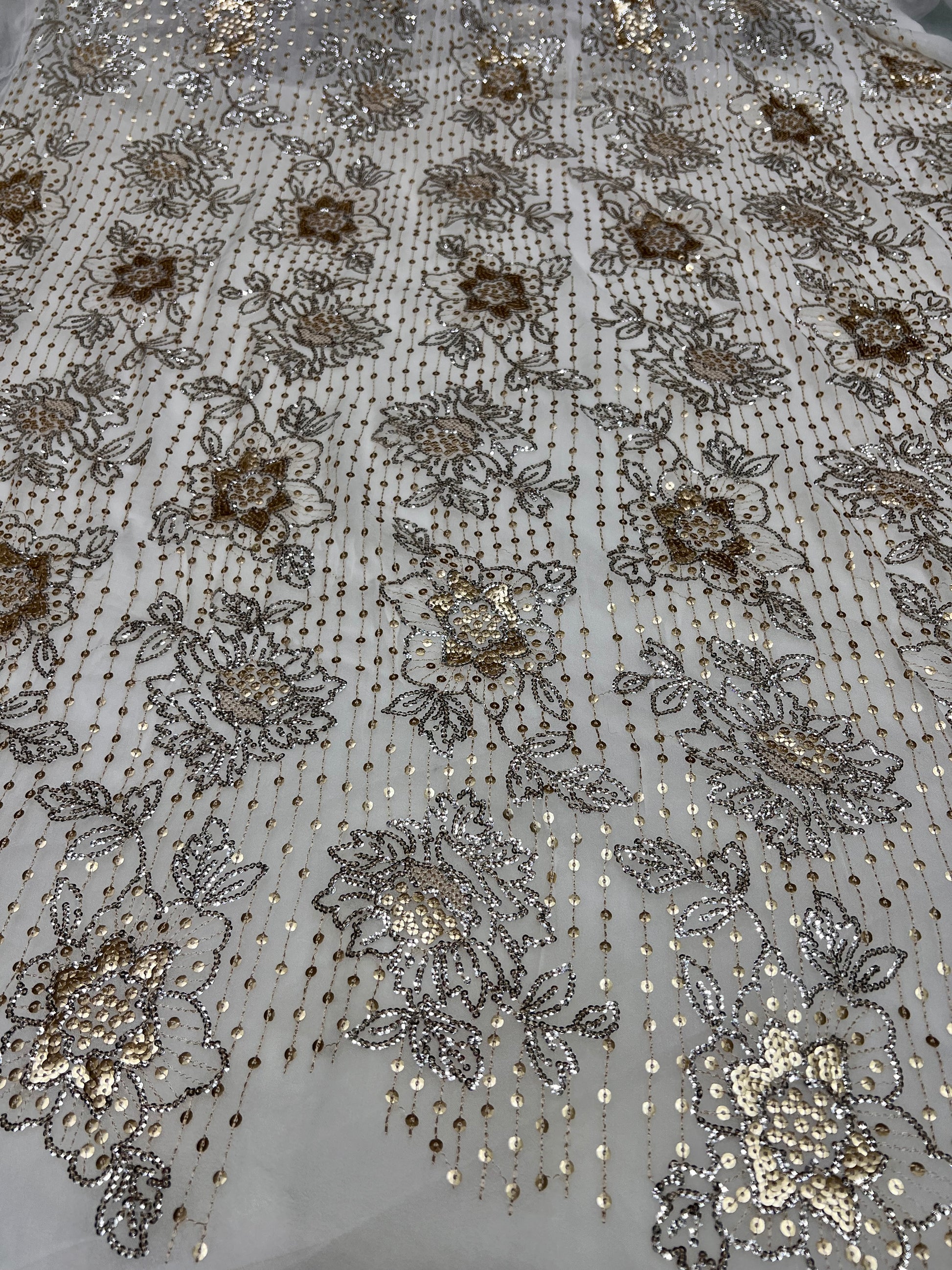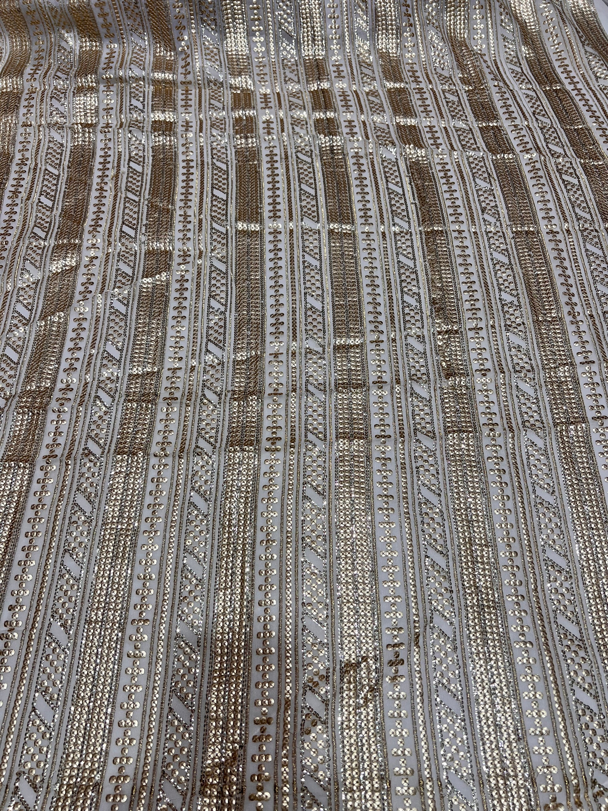 Unleash your creativity with our Chiffon Fabric featuring a white base and delicate golden work — a perfect blend of elegance and versatility. This lightweight, flowy fabric is fully dyeable, allowing you to personalize it in any color while preserving the charm of the golden embellishment.