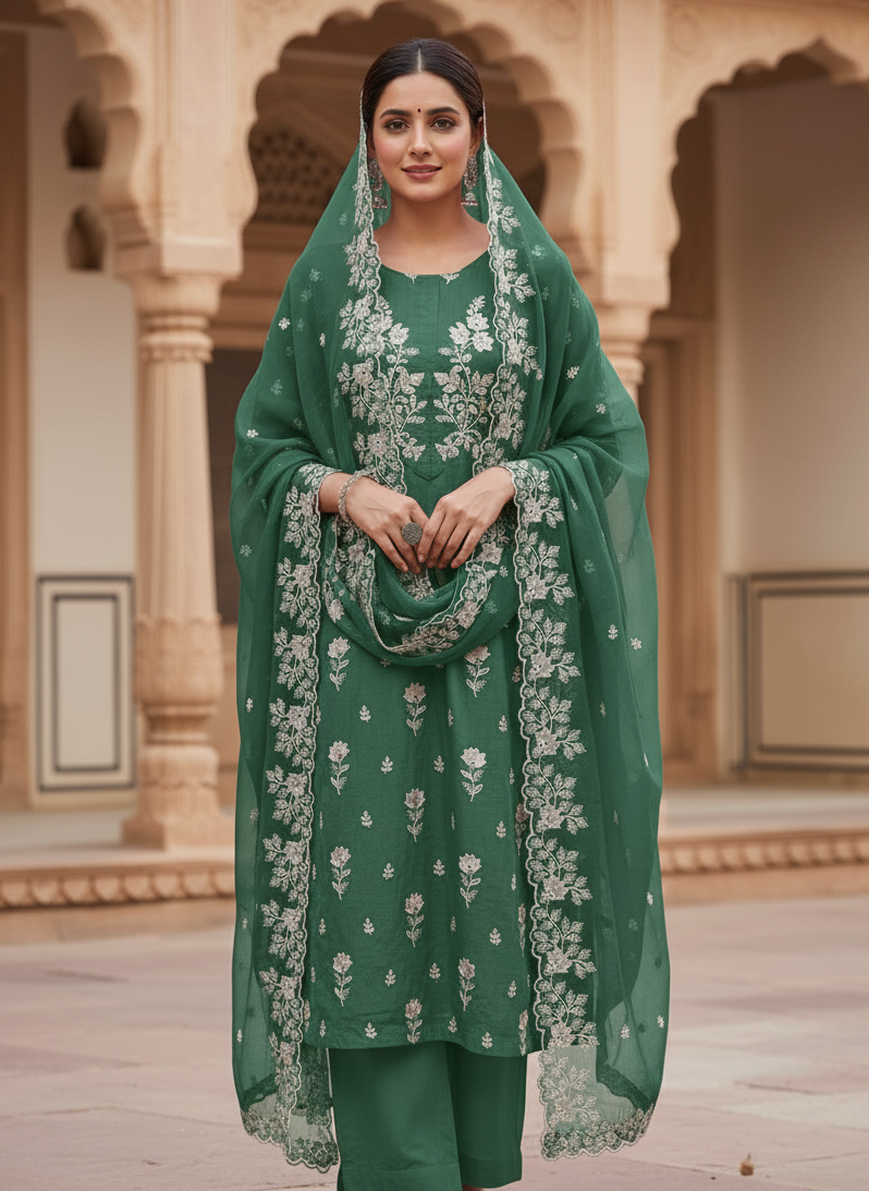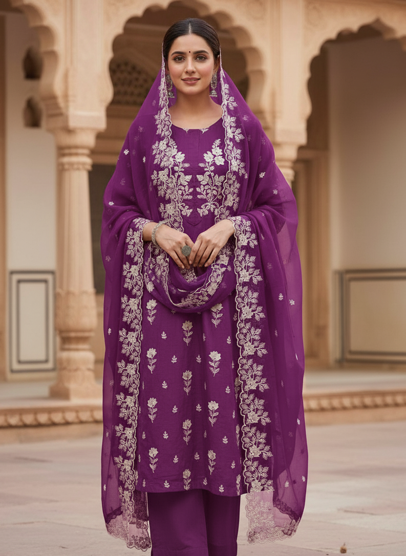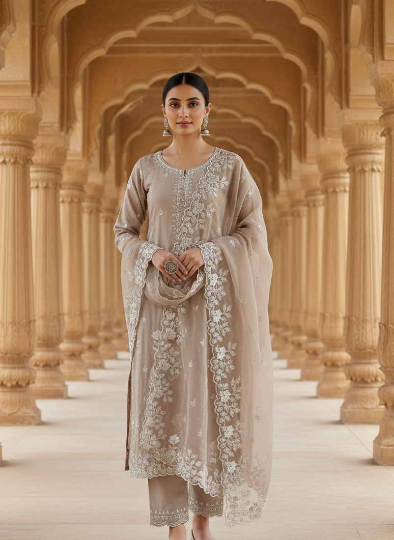 Step into timeless elegance with this stunning Raw Silk ensemble, adorned with intricate Shifli embroidery that adds a touch of sophistication to every occasion. Crafted from premium-quality raw silk, this outfit blends traditional craftsmanship with modern grace.