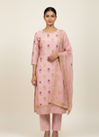 Raw Silk Cross-Stitched Suit with Chiffon Dupatta.