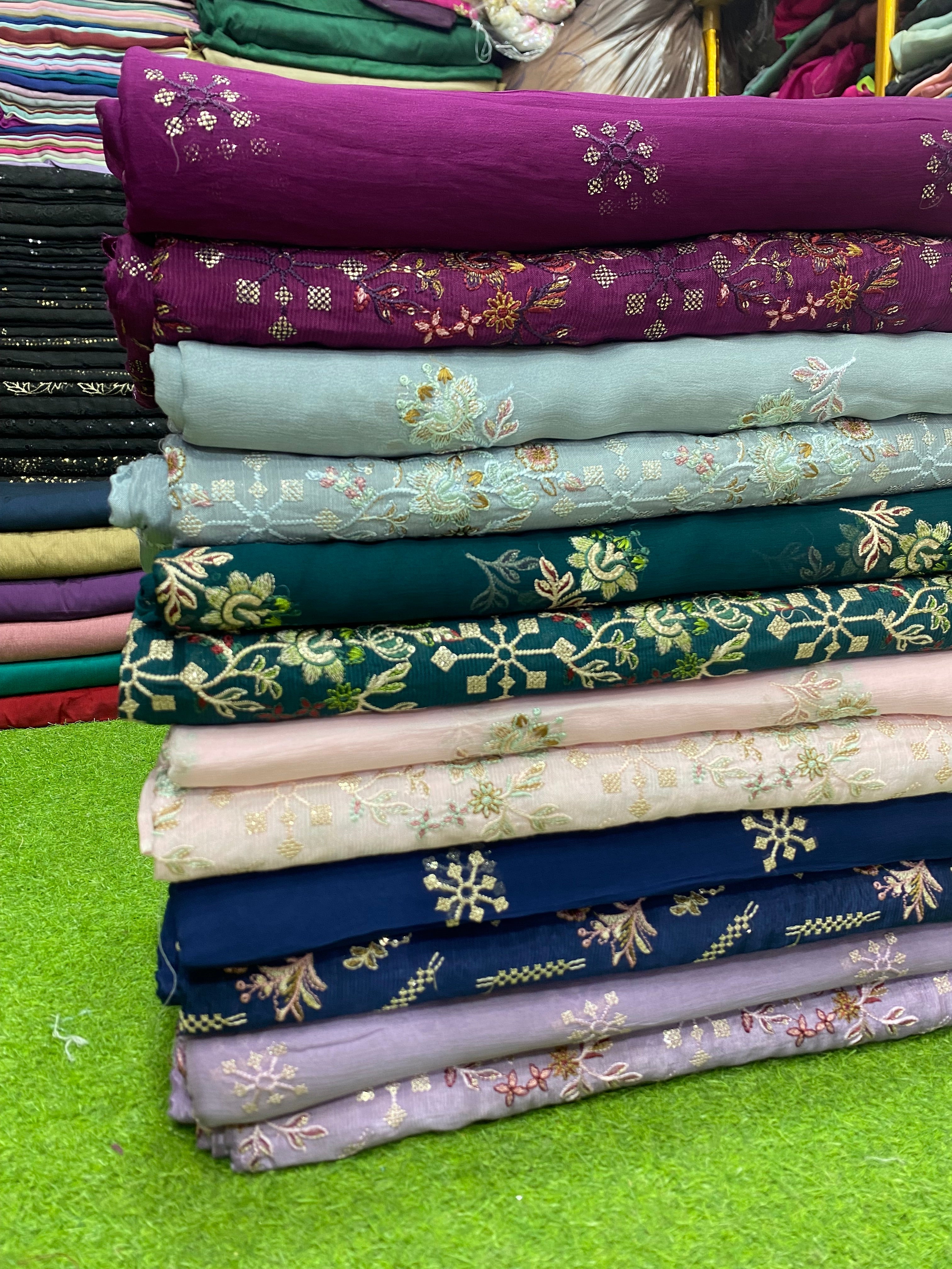 Elevate your wardrobe with our Unstitched Raw Silk Fabric adorned with exquisite multi work — a perfect blend of rich texture, vibrant embroidery, and luxurious appeal. Crafted on high-quality raw silk, this fabric features detailed multi-colored threadwork, sequins, or zari (based on design), making it ideal for statement ethnic and bridal ensembles.