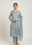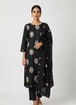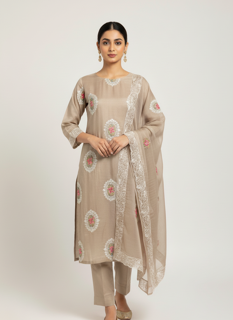 Raw Silk Shifli Work Suit with Chiffon Dupatta